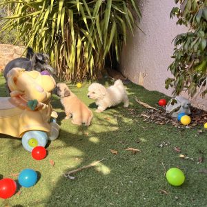 Τα κουτάβια μας διαμένουν σε ειδικό στεγαζόμενο χώρο, με κλιματισμό και ειδικά μηχανήματα αποστείρωσης αέρα με UVC ακτινοβολία και φωτοκατάλυση. Από την πρώτη τους μέρα στον χώρο μας, προεκπαιδεύονται σε πάνες (ειδικά υποστρώματα) και προαυλίζονται σε πάρκα περιορισμού, τα οποία προτείνουμε για την μετέπειτα εκπαίδευση τους. Η απολύμανση των χώρων στους οποίους προαυλίζονται και κοιμούνται, αποστειρώνονται 2 φορές την ημέρα.
