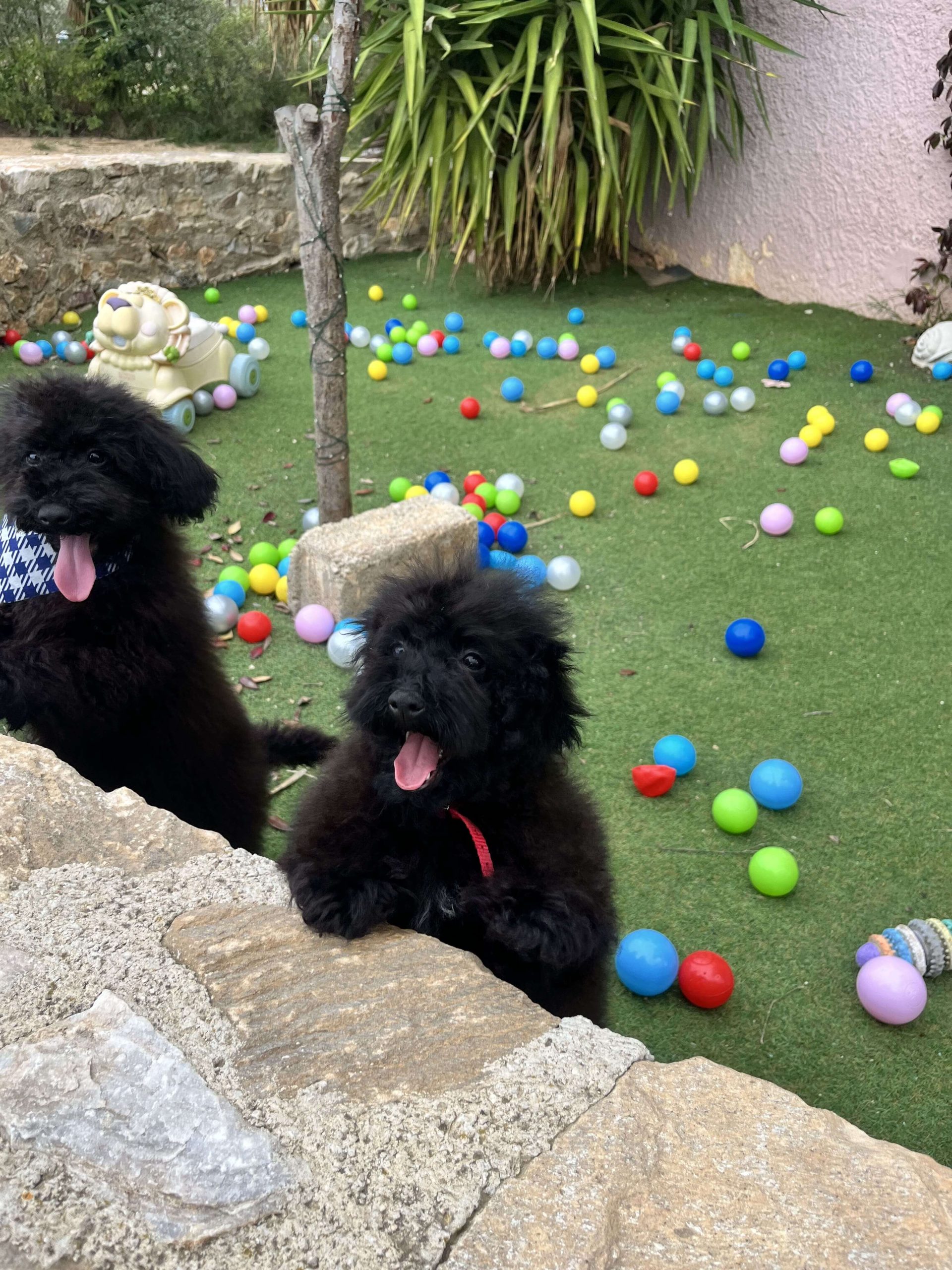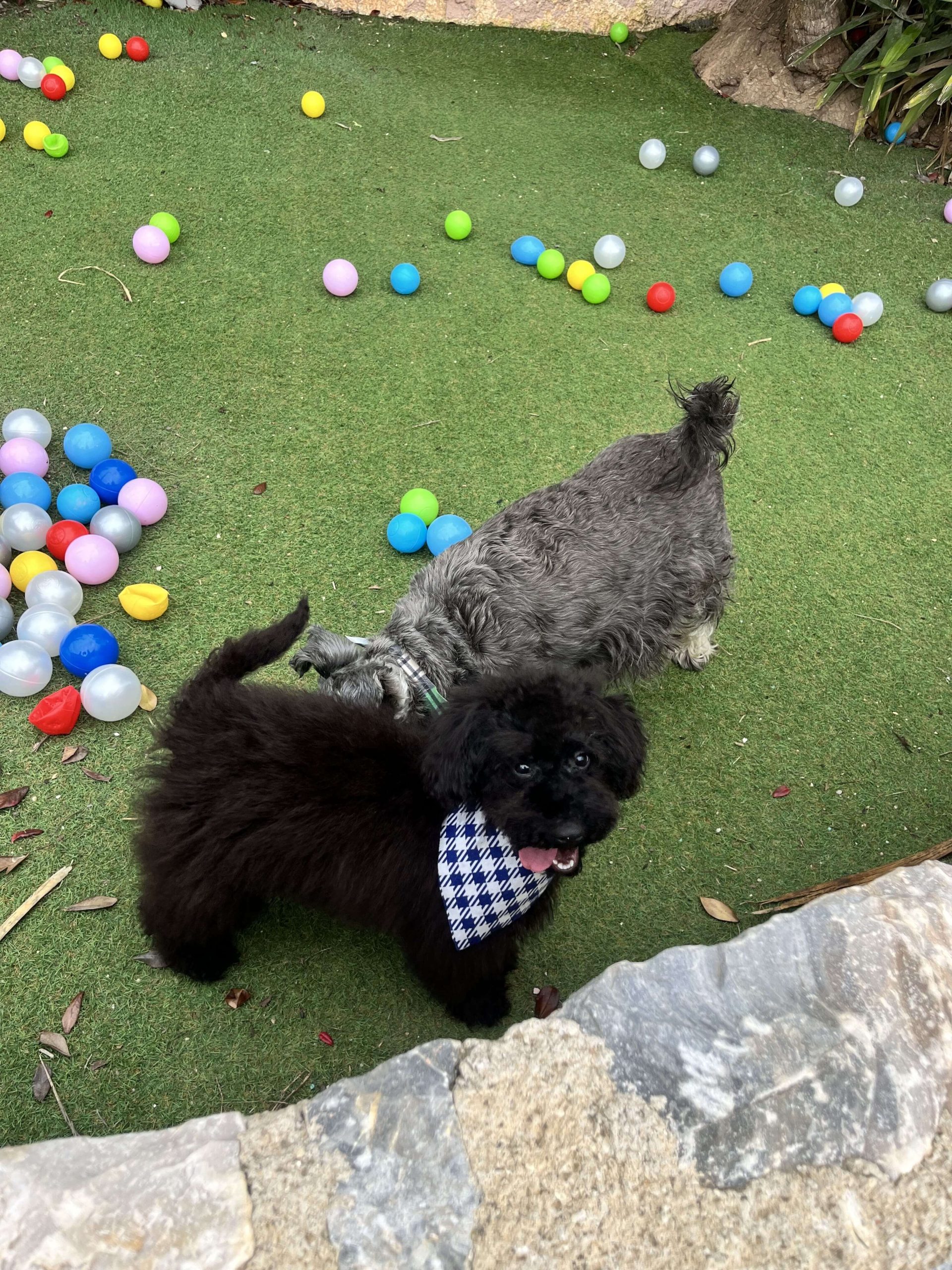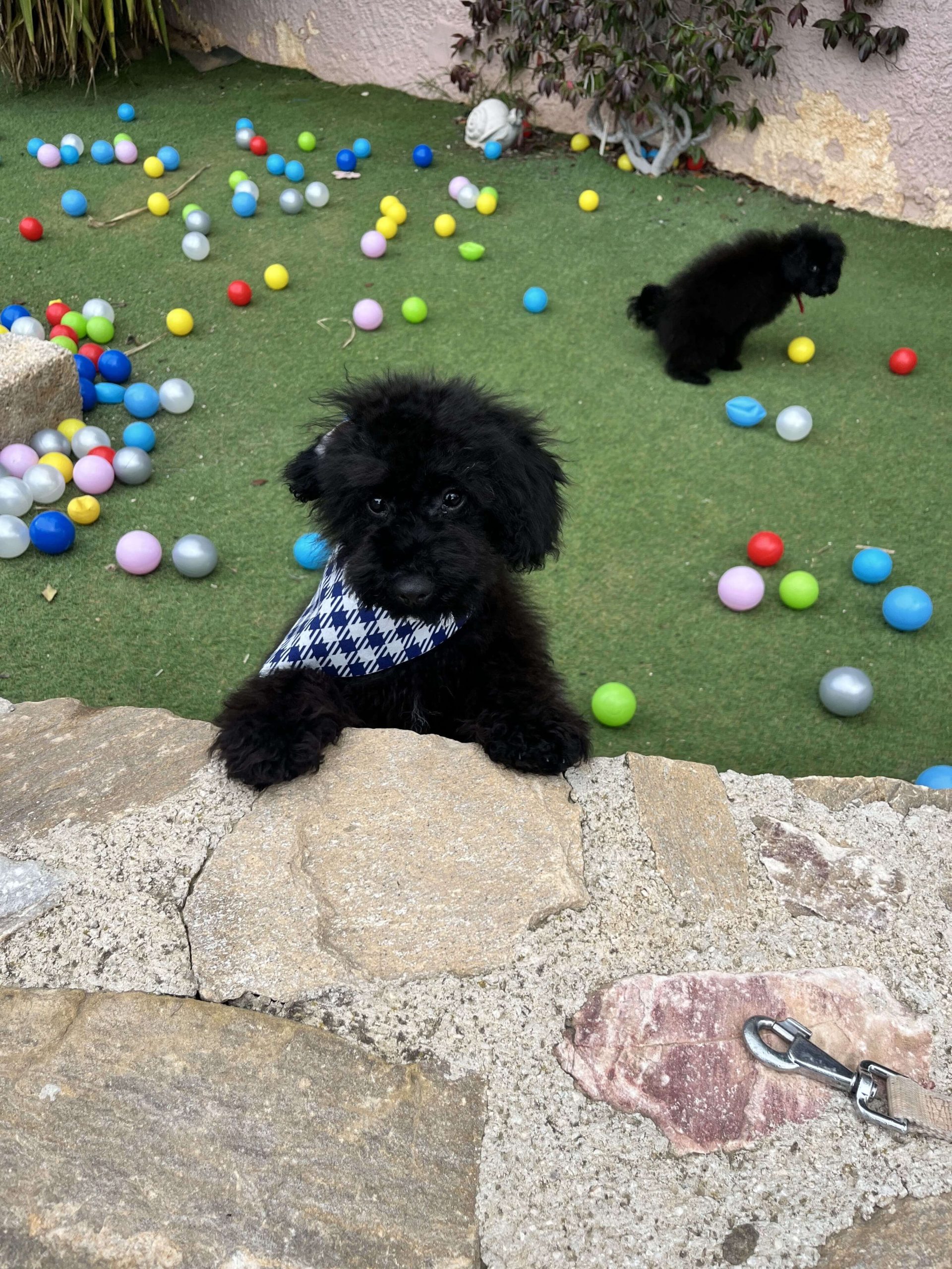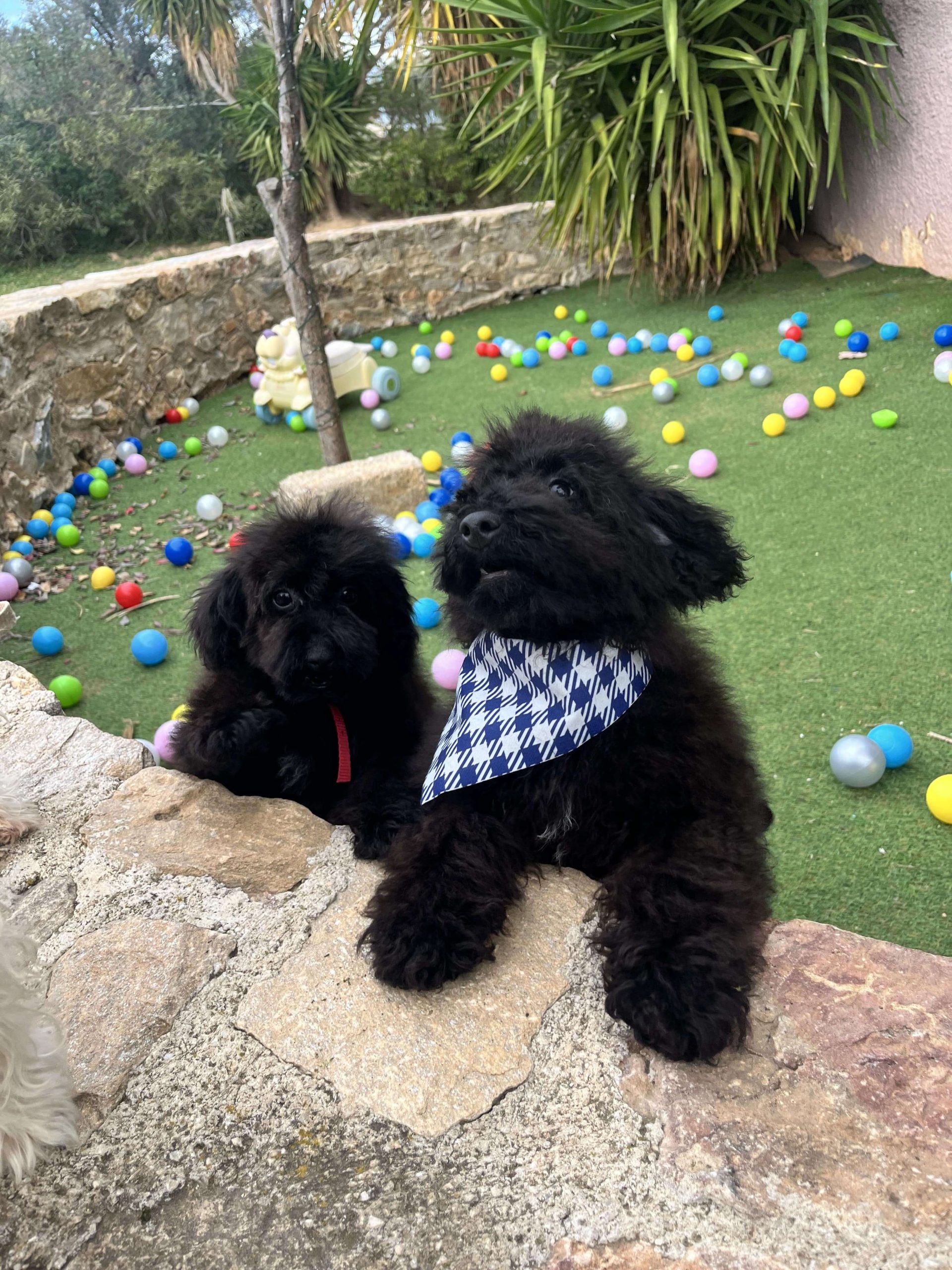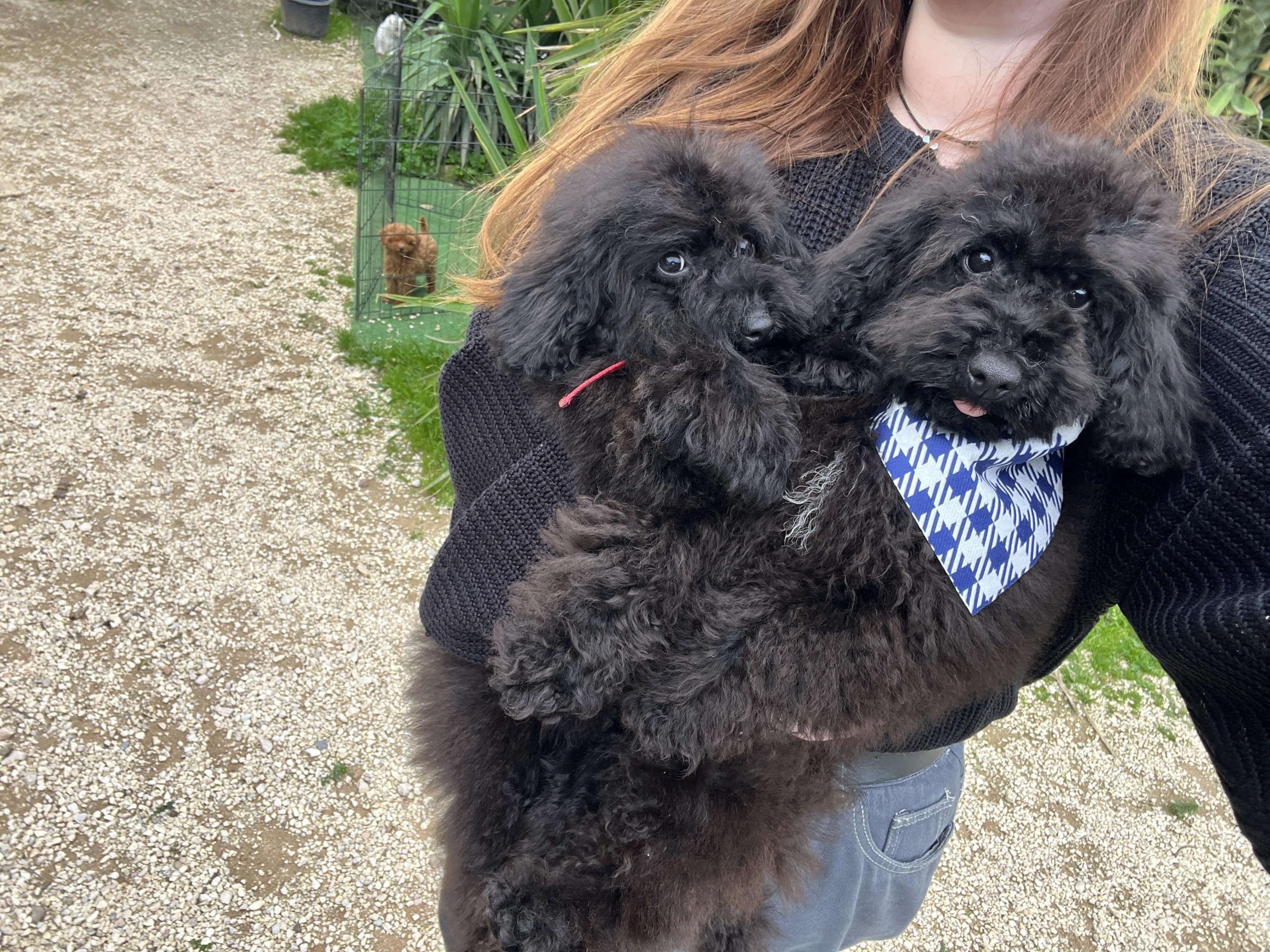 Δύο θεοπάλαβα αδέρφια, ένας με την μπαντάνα του και η κυρία χωρίς, που δεν κάθονται λεπτό ακίνητα, φωνάζουν όταν τα αγνοείς και προσπαθούν με μανία να σκαρφαλώσουν πάνω σου. Φανταστικό; Poodl-άκια μέγεθος μινι, 3 μηνών!