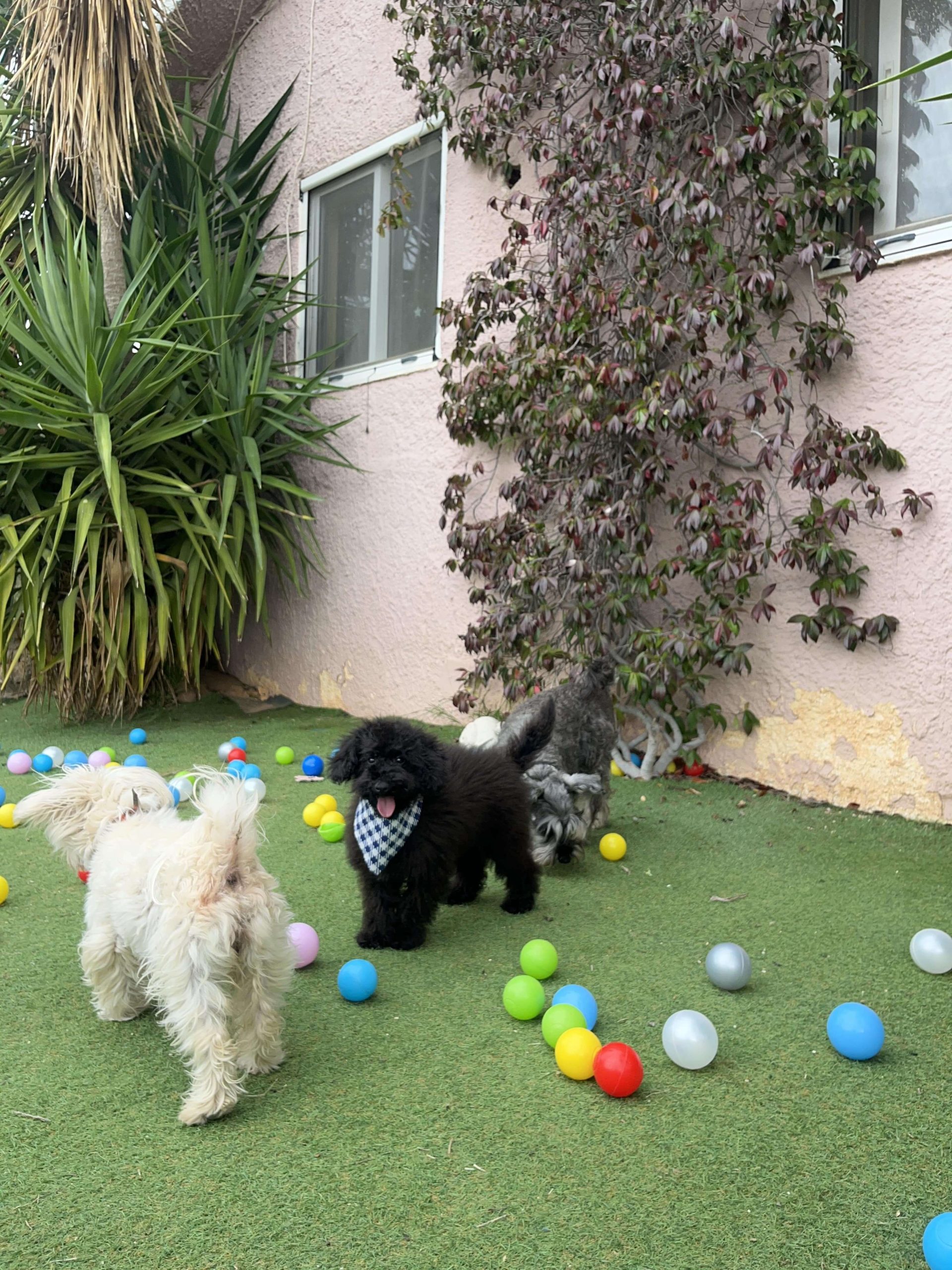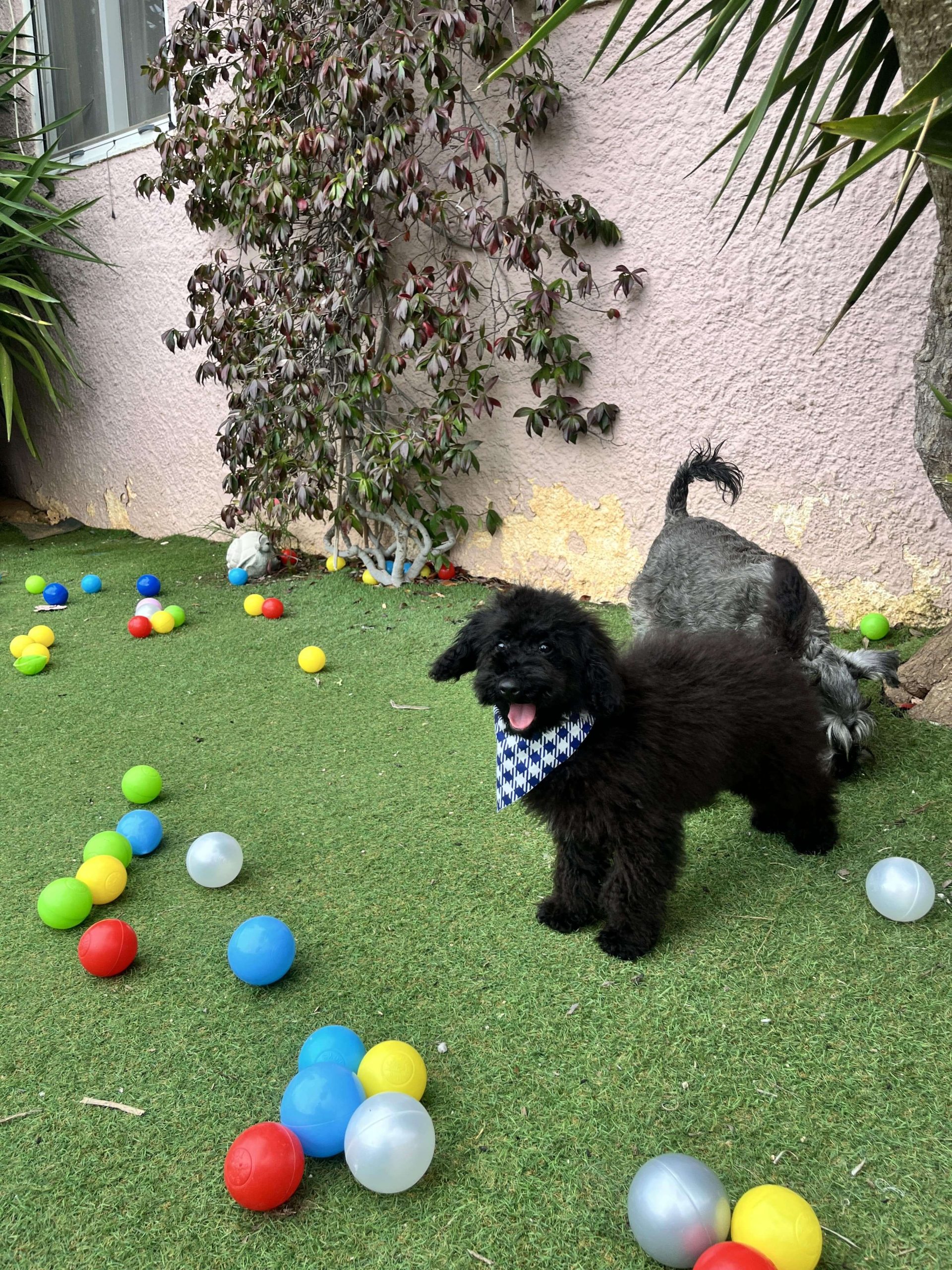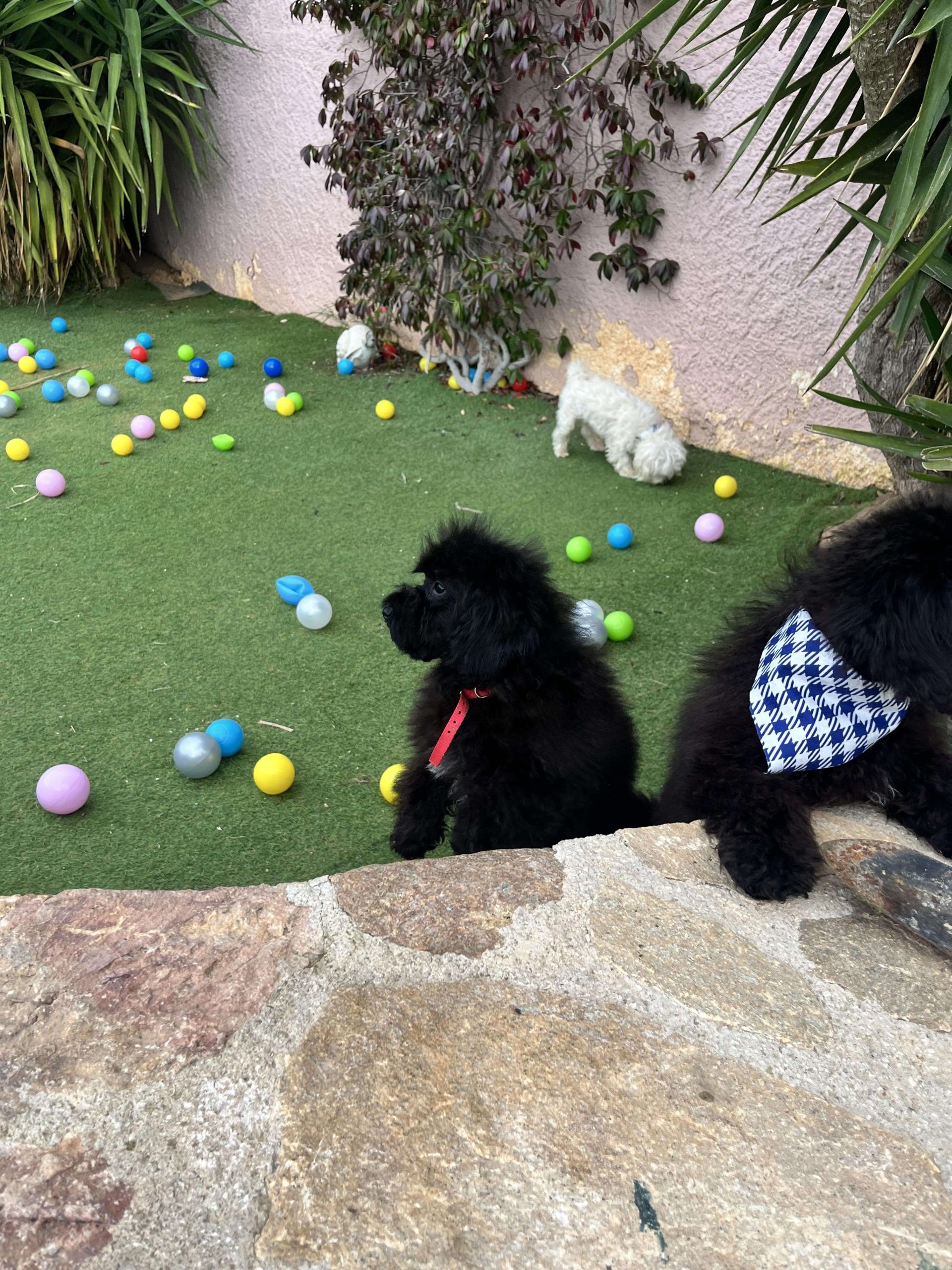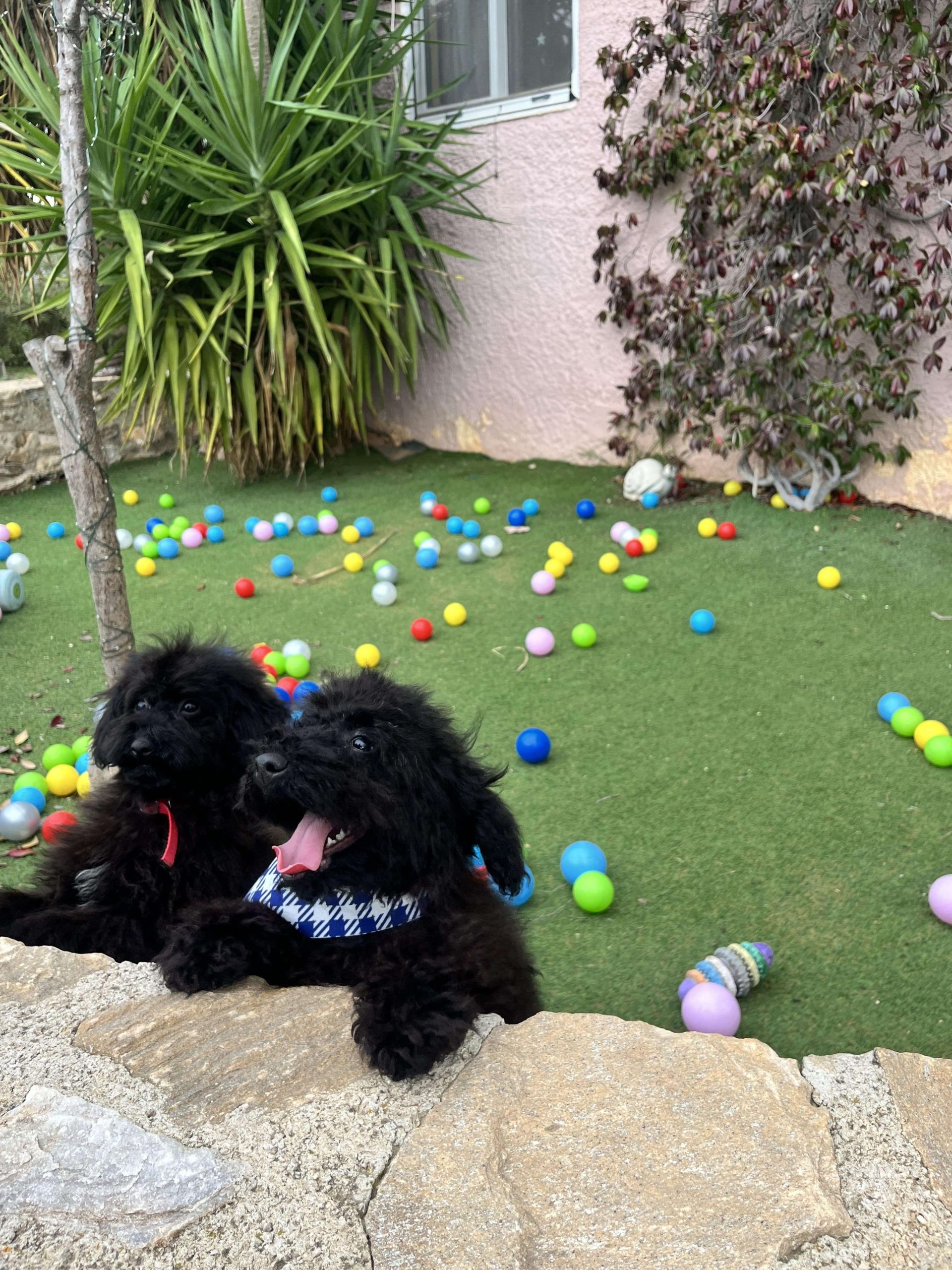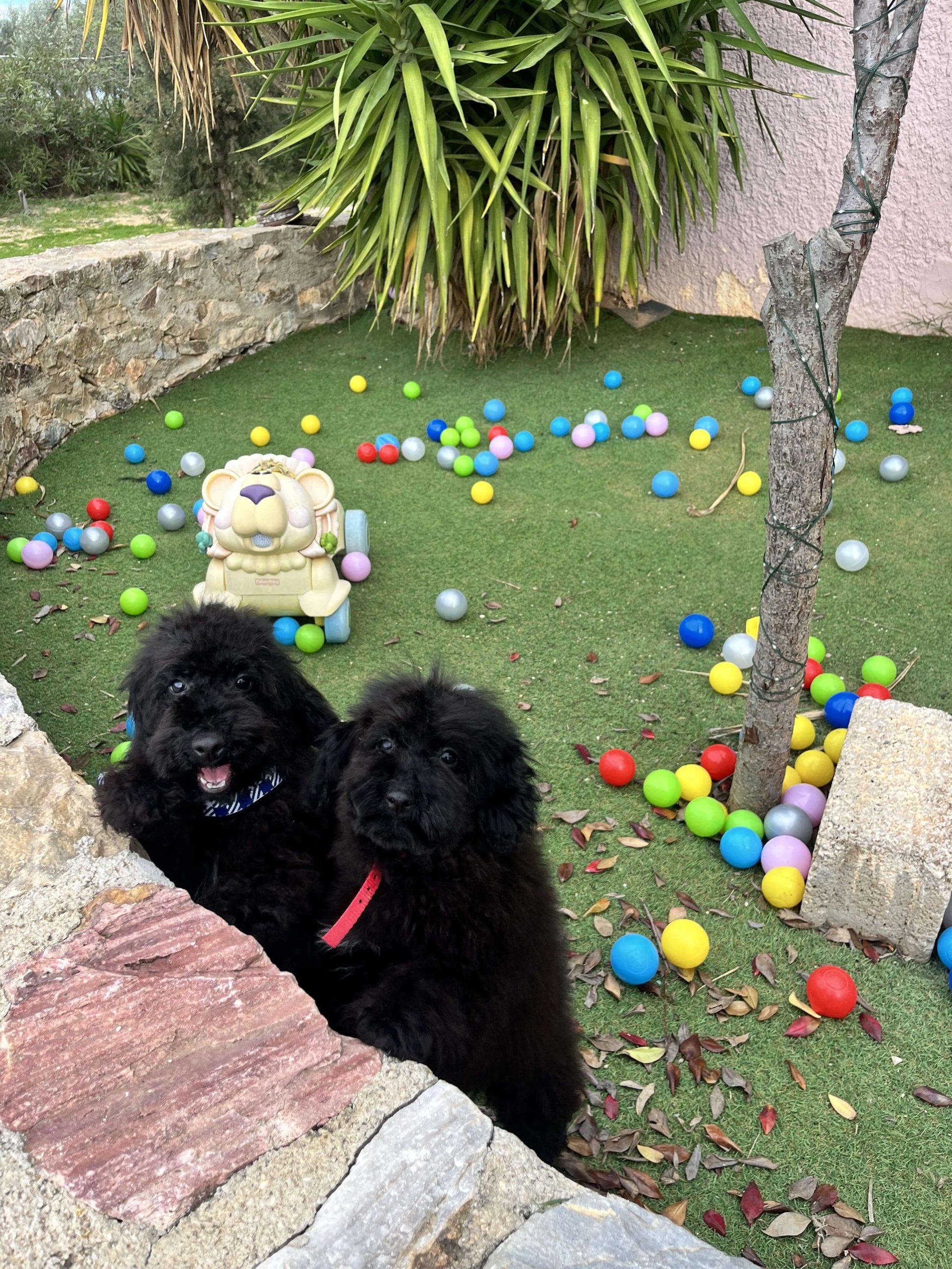 Δύο θεοπάλαβα αδέρφια, ένας με την μπαντάνα του και η κυρία χωρίς, που δεν κάθονται λεπτό ακίνητα, φωνάζουν όταν τα αγνοείς και προσπαθούν με μανία να σκαρφαλώσουν πάνω σου. Φανταστικό; Poodl-άκια μέγεθος μινι, 3 μηνών!